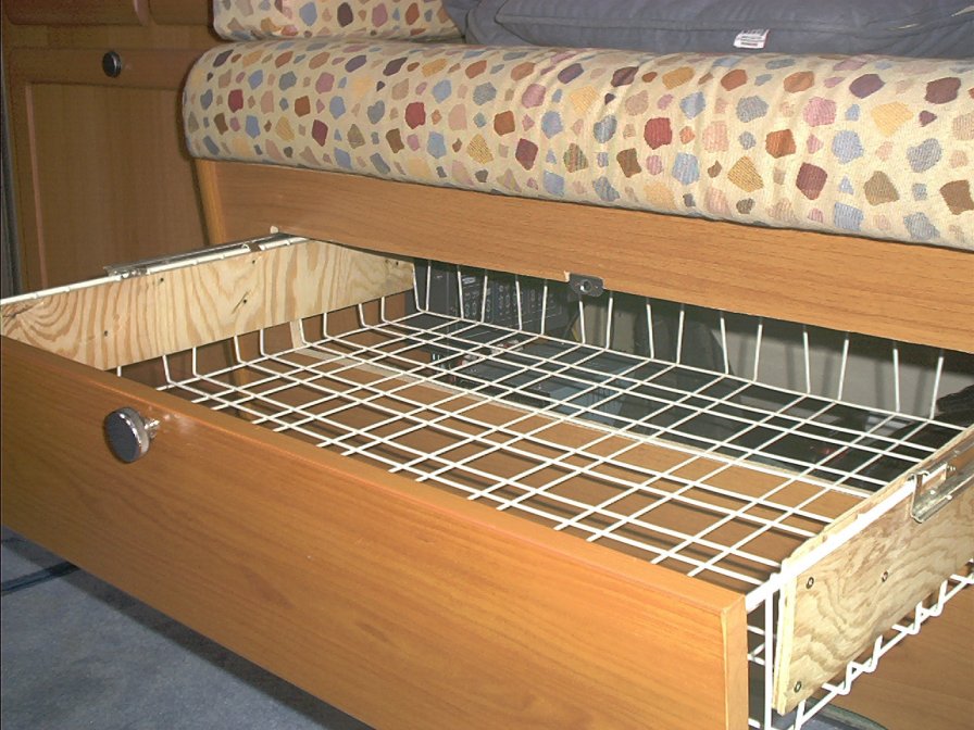 Die nächste Schublade habe ich in der Längssitzbank eingebaut.Dort sollte ein Drahtkorb als Schmutzwäschefach