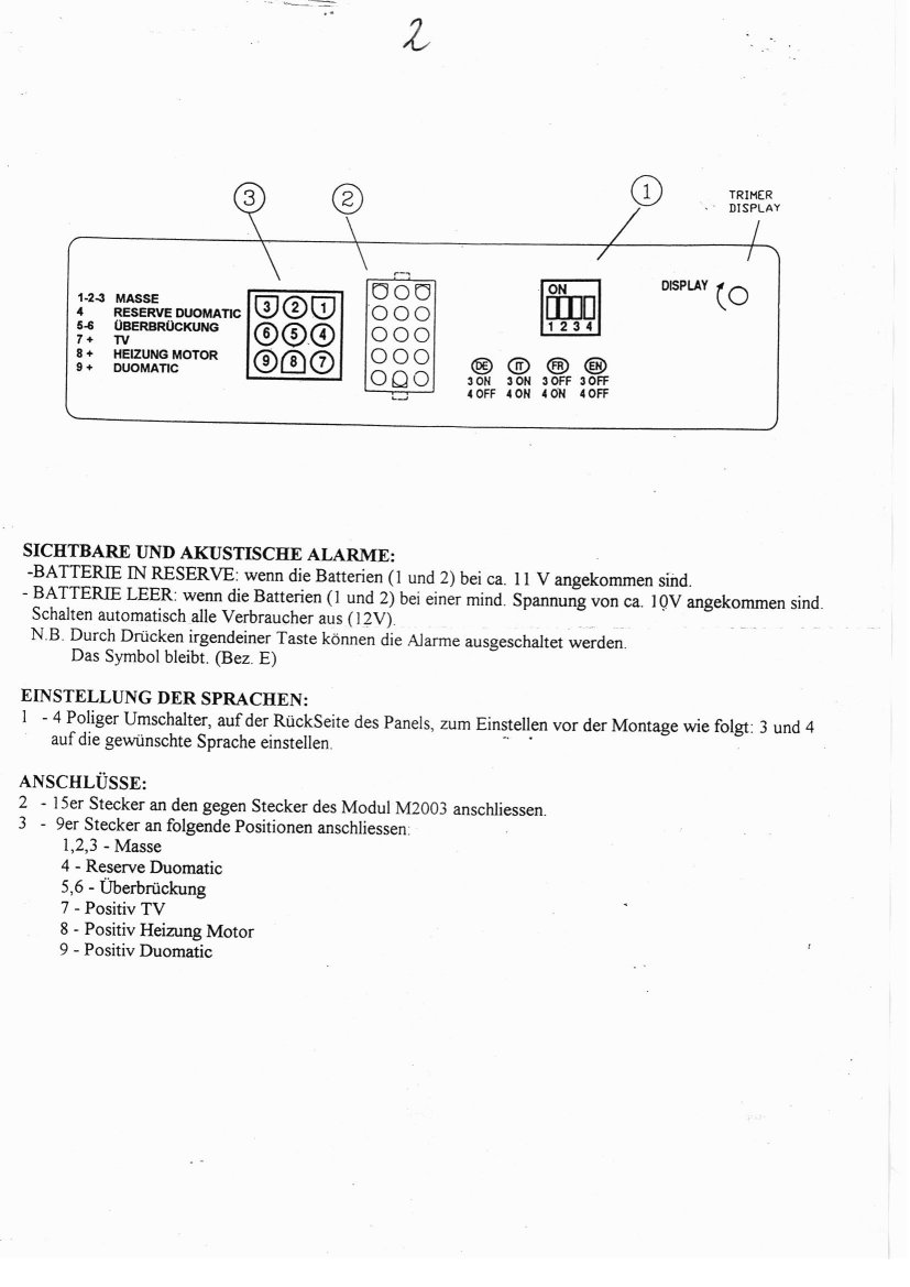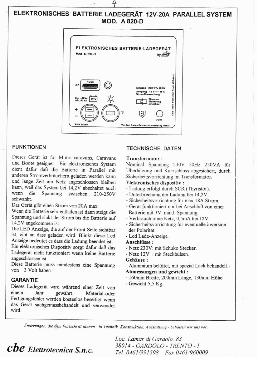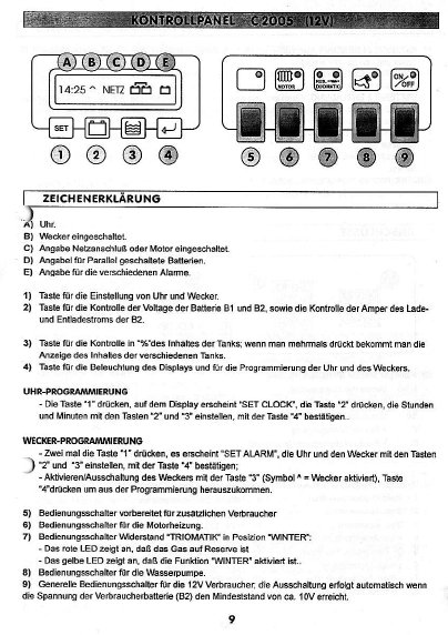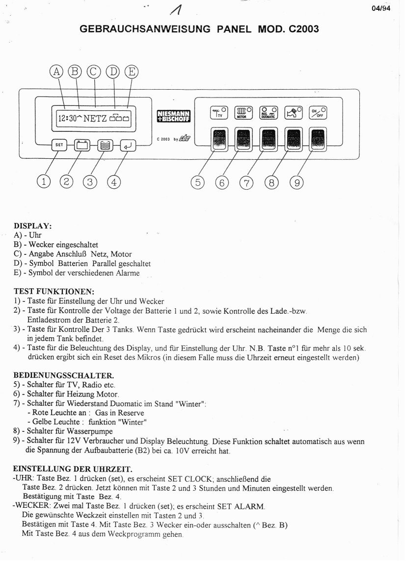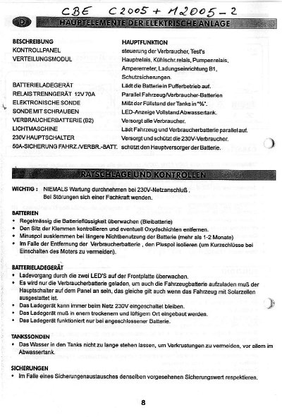 Gebrauchsanweisung von N+B für das Panel, die Relaisbox und Ladegerät |