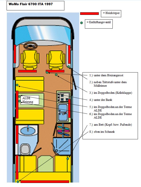 Entlüftungen der Heizung von der Flair 8000 Alkoven |