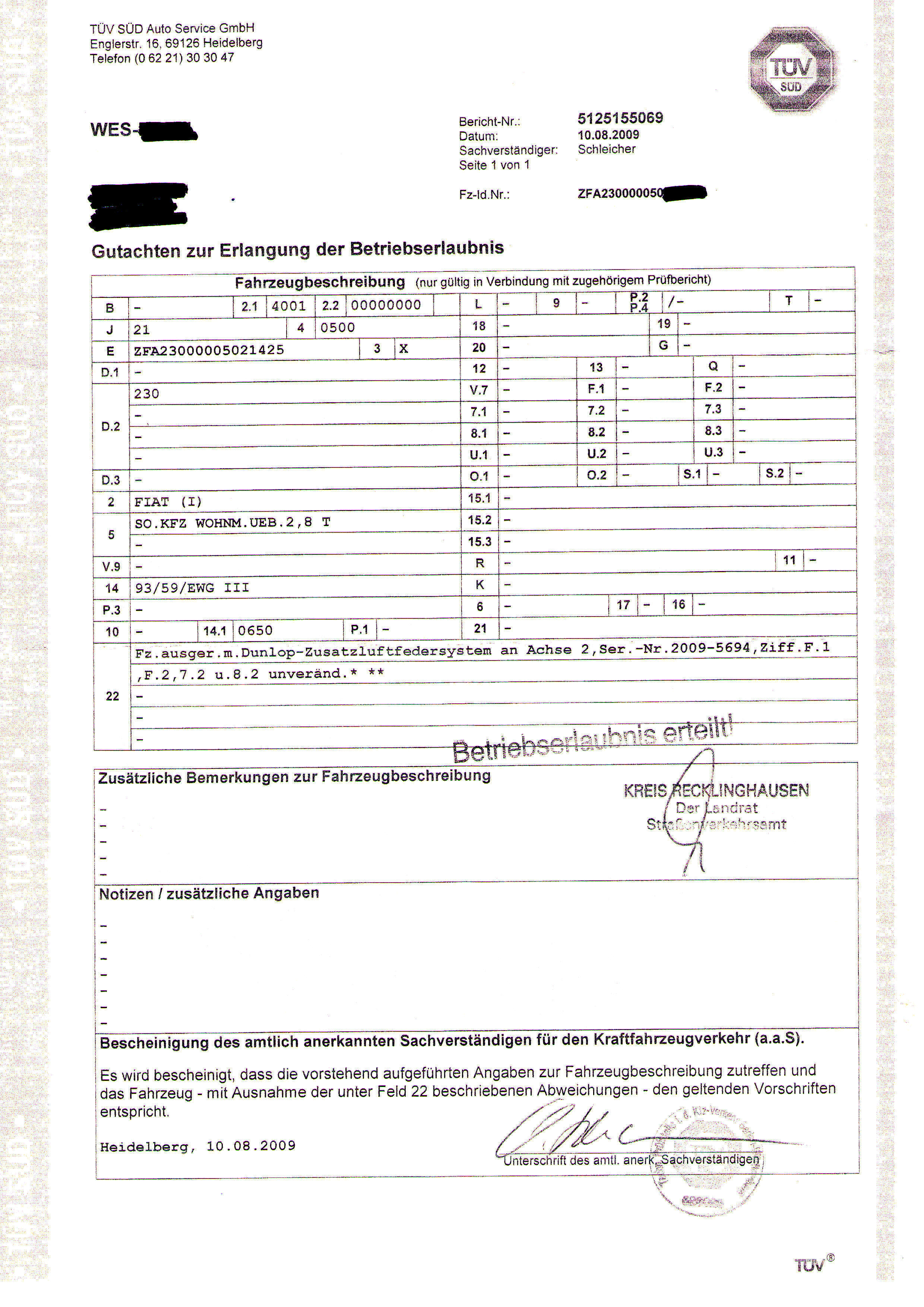 Gutachten Zusatzluftfederung